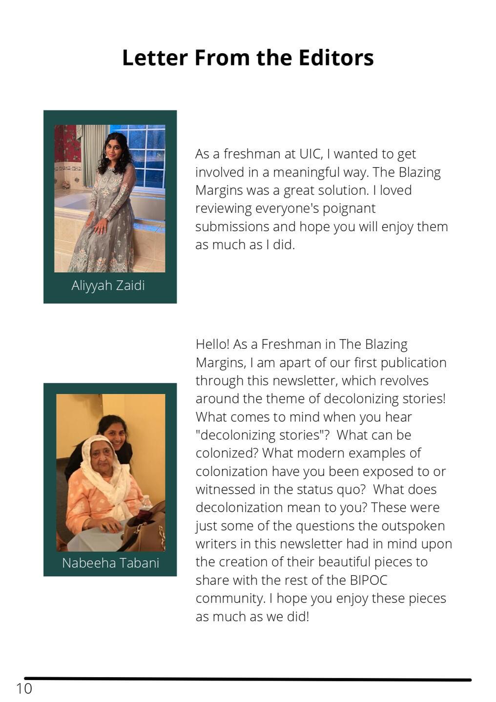 focused on providing UIC's BIPOC communities a space for solidarity and educational discussions through seminars, events, and a literary magazine